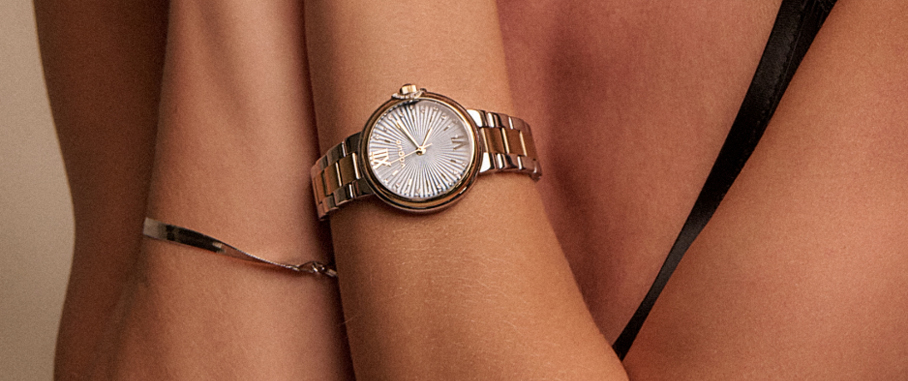 Corine watch two tones gold-silver bracelet and champagne dial