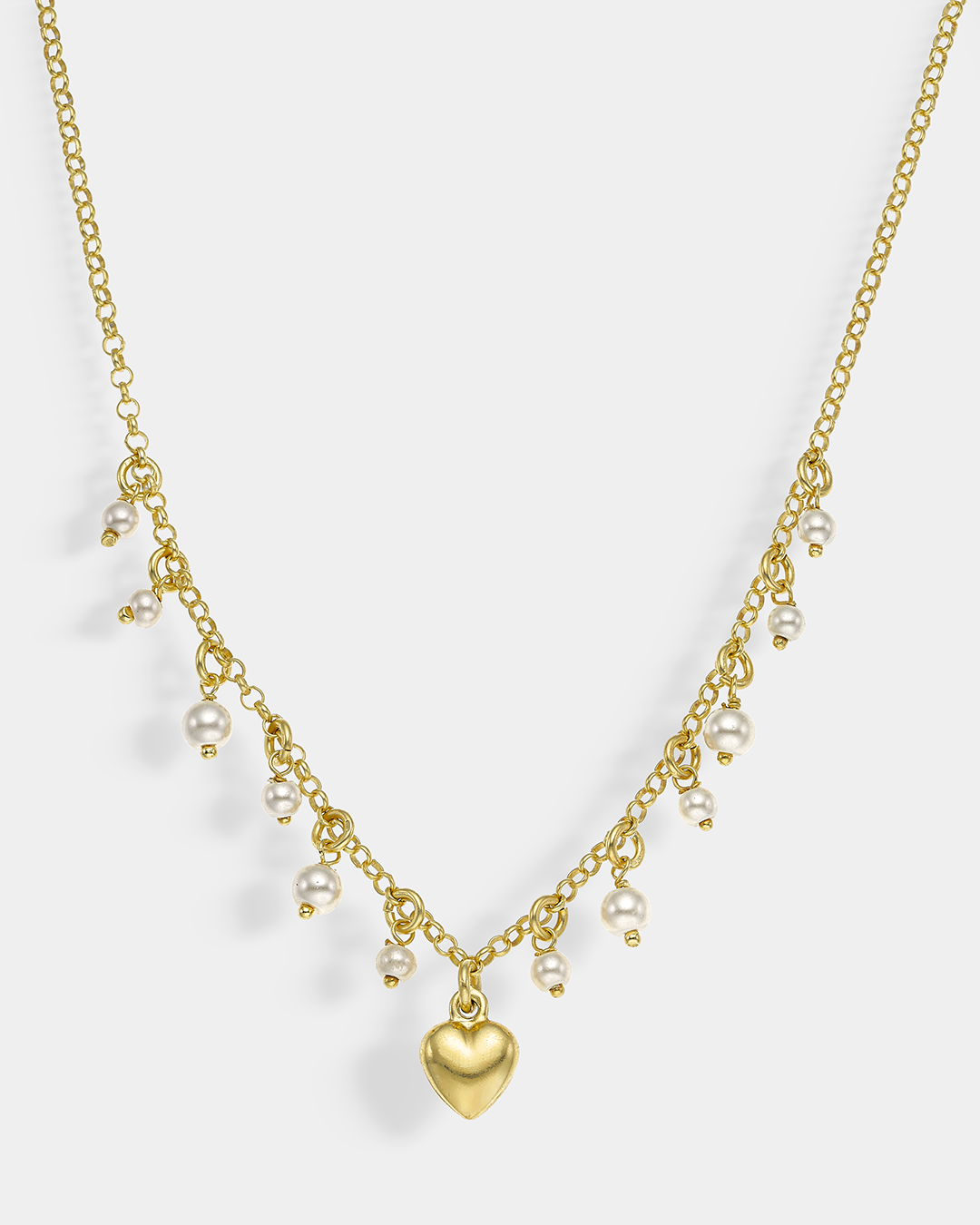 Charm necklace in gold-plated Silver 925° with hearts and pearls