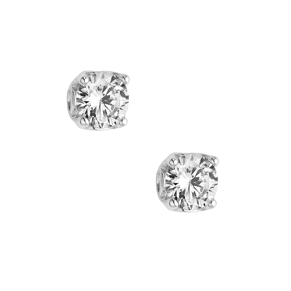 Stud earrigns by the Solitaire collection with big white zircons in Brilliant cut. The base is Sterling Silver 925, VOGUE.