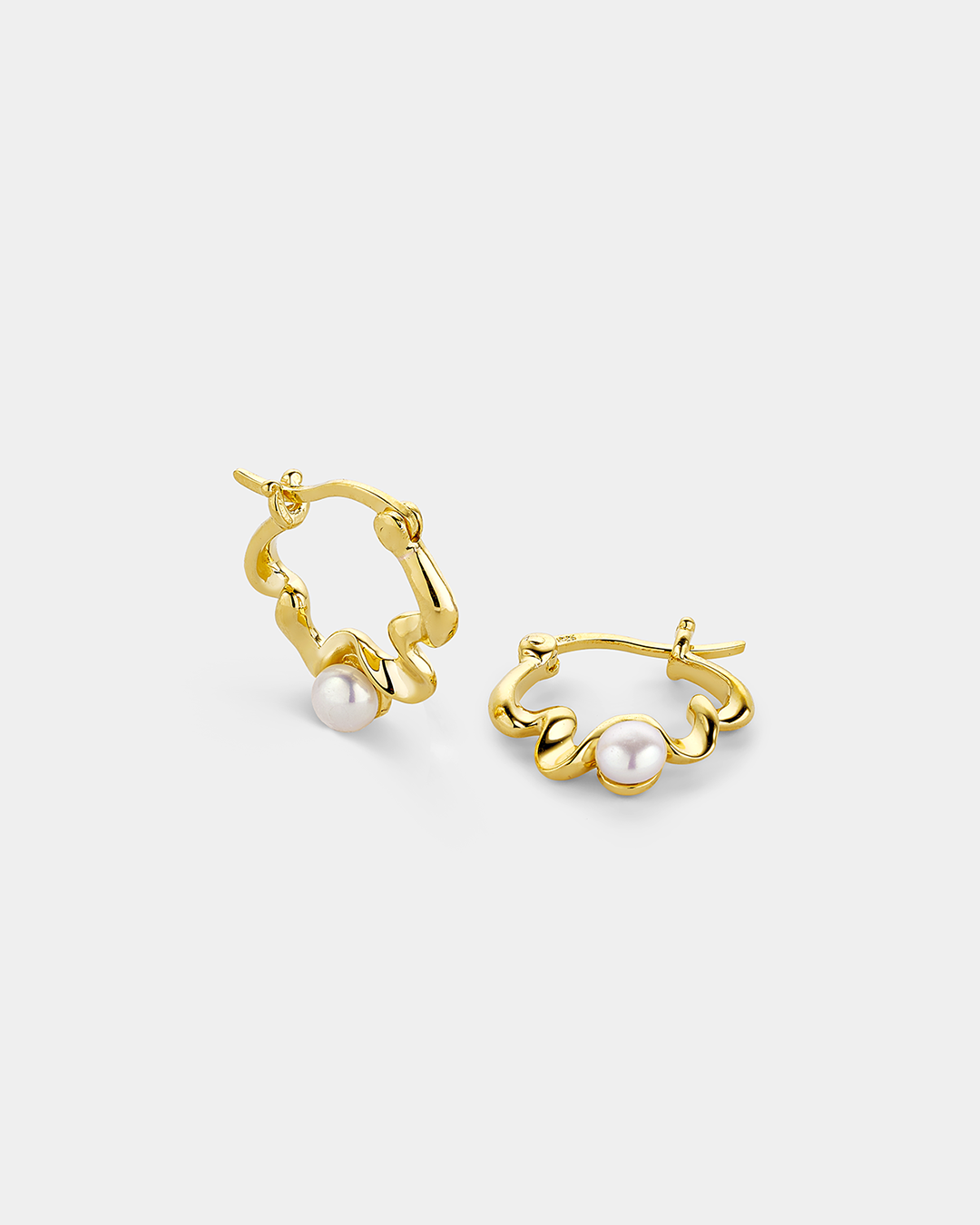 Wave pearl hoops in gold-plated Silver 925°