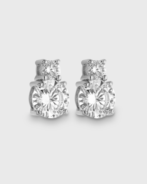 Καρφωτά σκουλαρίκια με δύο λευκά ζιργκόν και επιροδιωμένο Ασήμι 925°