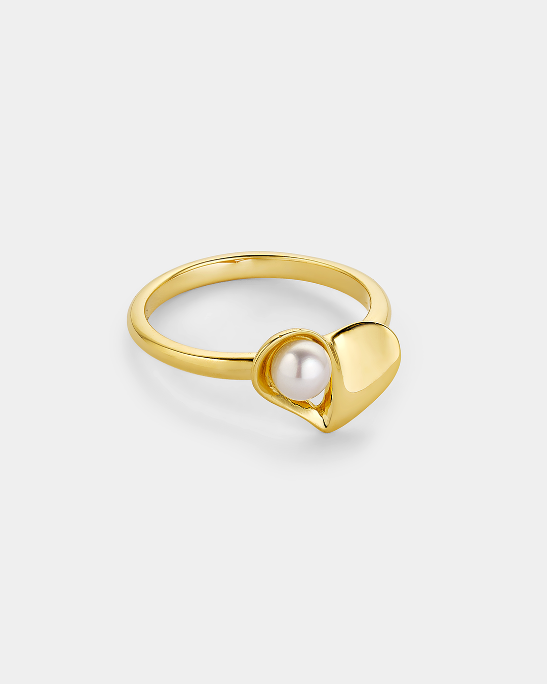Δαχτυλίδι με καρδιά και μαργαριτάρι από επιχρυσωμένο Ασήμι 925°