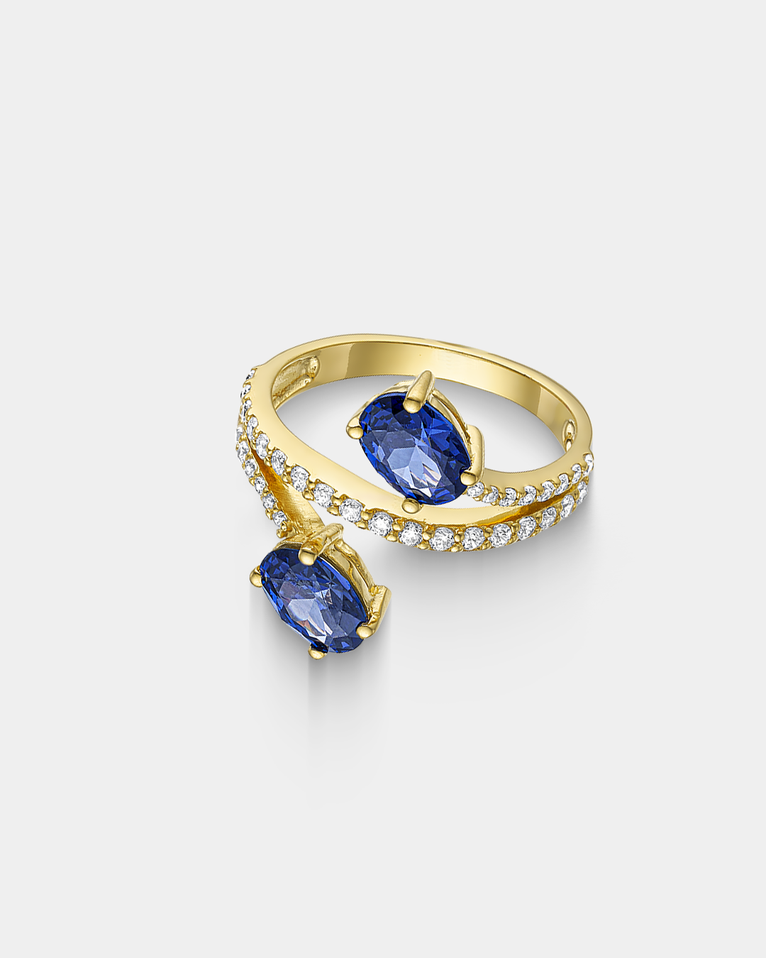 Δαχτυλίδι με μπλε πέτρες από επιχρυσωμένο Ασήμι 925°