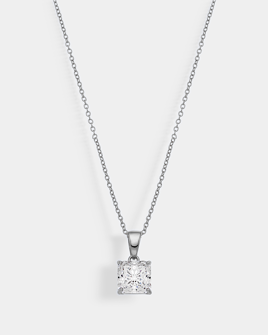 Κολιέ μονόπετρο με λευκό zircon και Ασήμι 925°