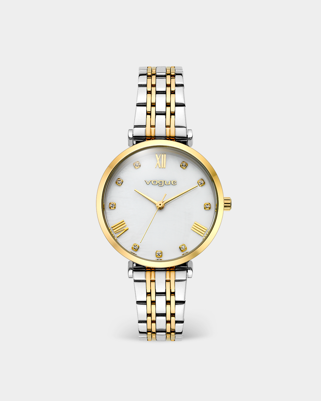 New Bliss ρολόι με δίχρωμο ασημί-χρυσό μπρασελέ και λευκό καντράν από φίλντισι
