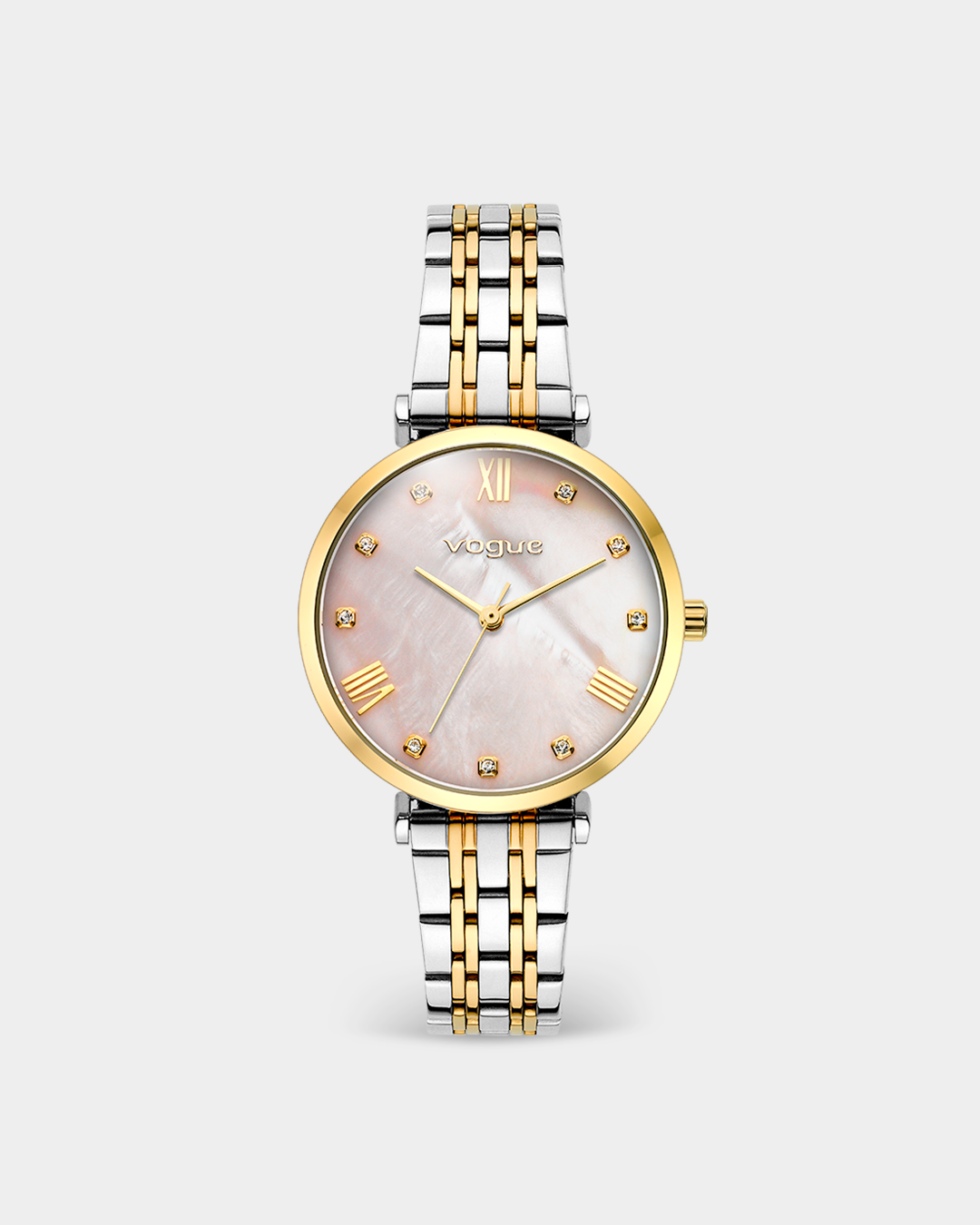 New Bliss ρολόι με δίχρωμο ασημί-χρυσό μπρασελέ και σαμπανί καντράν από φίλντισι